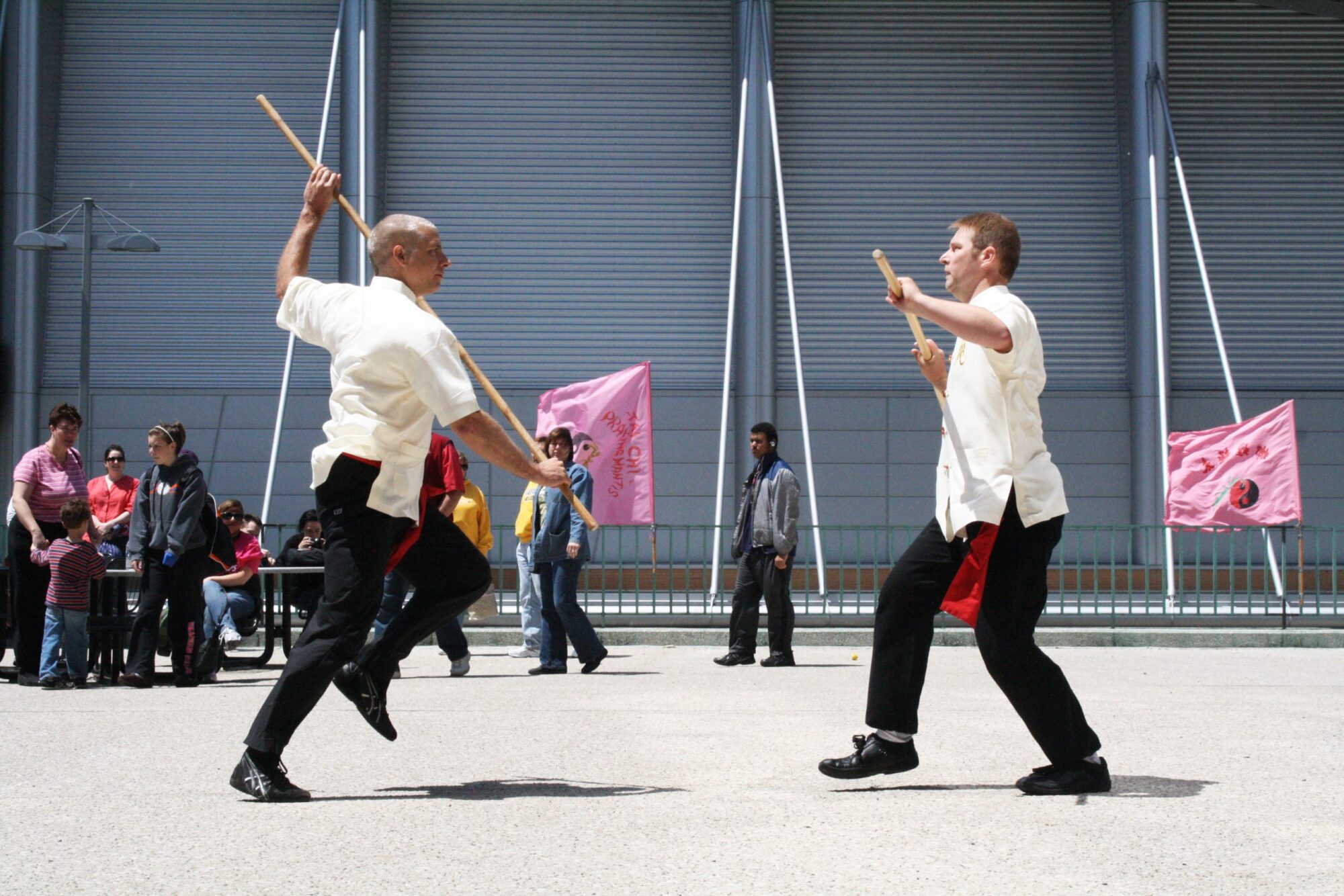 Our curriculum includes many forms, including single- and two-person empty hand forms, and many weapons such as the stick, dao (curved sword), spear, daggers, yao dao and guan dao (halberds), and cane. We also teach many two-person weapons forms, such as spear vs. sword, daggers vs. umbrella, and two-section staff vs. spear.